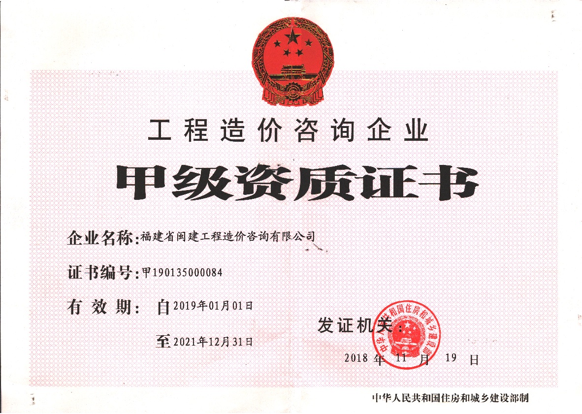 福建省閩建工程造價咨詢有限公司成立于1993年,原隸屬福建省建設委員會,2001年脫鉤改制為有限責任公司,公司注冊資本1200萬元,是一家具有甲級工程招標代理資質(證書編號:F135000429)、甲級工程造價咨詢資質(證書編號:甲150135000084)、政府采購代理資質、預備級中央投資項目招標代理機構資質(證書編號:ZYTZ-C2013239)、丙級工程資質(證書編號:工咨丙11520160008)的綜合性工程咨詢服務單位。能承擔各類建設項目的工程招標代理、工程造價咨詢...